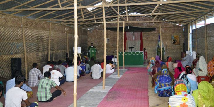 KIRCHE IN NOT: Bischof DʼCruze, wie sind die Lebensbedingungen in Ihrer Diözese? BISCHOF BEJOY NICEPHORUS D’CRUZE:Mein Bistum Sylhet wurde erst 2011 gegründet. Ich bin der erste Bischof. Anfangs hatte ich noch nicht einmal ein eigenes Haus. Ich lebte zur Miete bei Muslimen. Ich konnte dort weder die heilige Messe feiern, noch durfte ich Zusammenkünfte für Christen abhalten. Ich feierte oft heimlich die Messe, manchmal zusammen mit den Priestern meiner Diözese.