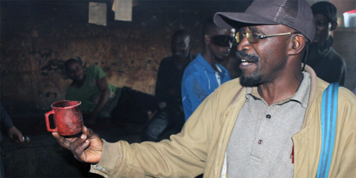 In der Gefängnisküche zeigt Pfarrer Adrien einen Becher hoch, der weniger als einen Viertelliter fasst: „Das ist die Tagesration Mais oder Hirse für einen Häftling.“ Weil das nicht ausreicht, müssen die Häftlinge Lebensmittel bei Händlern kaufen, die Zugang zum Gefängnis haben.