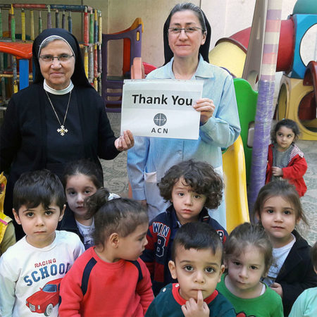 KIRCHE IN NOT hat seit Beginn des Syrienkriegs im Jahr 2011 Projekte im Umfang von über 60 Millionen Euro unterstützt. Unser Hilfswerk finanziert die Verteilung von Lebensmitteln und Medikamenten, Schul- und Studiengebühren, Mietbeihilfen, Kinderfreizeiten und vieles andere mehr. Nach dem Erdbeben im Norden Syriens im Februar 2023 brachte KIRCHE IN NOT Sofort- und Wiederaufbauhilfen auf den Weg.