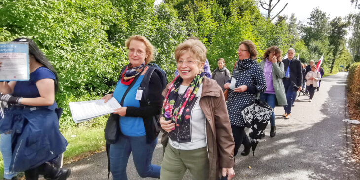 Der Marsch endete an der Stelle, wo sich im KZ Dachau die Kapelle des sogenannten Priesterblocks Nr. 26 befand. Dort verlasen die Organisatoren die Namen der bisher seliggesprochenen Häftlinge. Insgesamt waren 2.720 Geistlichen zwischen 1933 und 1945 in Dachau interniert. Bei einer Andacht in der Todesangst-Christi-Kapelle sangen die Teilnehmer den Hymnus „Christus Sieger, Christus König, Christus Herr in Ewigkeit“. Dieses Lied hatten die Lagerhäftlinge als Akt des Widerstandes immer wieder angestimmt. Damit wollten sie verdeutlichen, dass Jesus Christus für sie der wahre Herrscher war. Zum Abschluss beteten die Teilnehmer am Aschegrab im Gebiet des Krematoriums frei formulierte Fürbitten nach dem Vorbild der frühen Christen, die an den Märtyrergräbern in den römischen Katakomben um die Fürsprache der Glaubenszeugen baten.