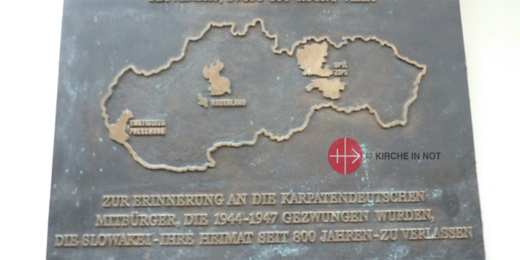 Diese Tafel am Museum der Kultur der Karpatendeutschen in Pressburg erinnert an die Vertreibung der Deutschen.