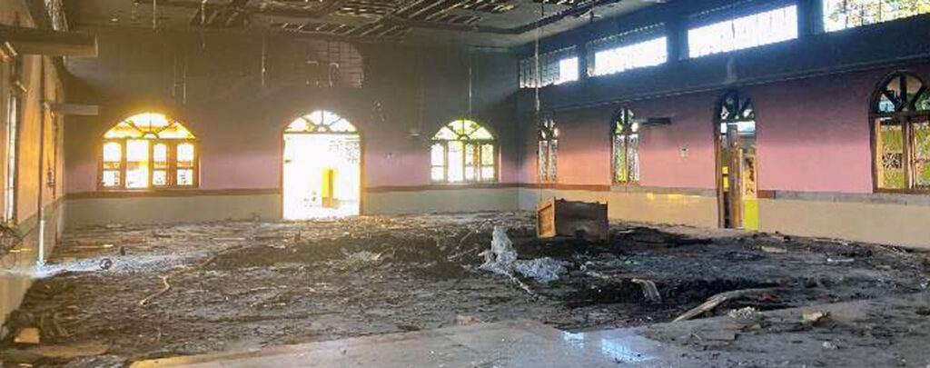 So drangen in einem Stadtviertel der Provinzhauptstadt Imphal nach Angaben der lokalen katholischen Diözese Anfang Mai Angreifer in die Pfarrei St. Paul und das dazugehörige pastorale Ausbildungszentrum ein, an dem sich Angehörige verschiedener Ethnien aufhielten. „Der Mob zertrümmerte Fensterscheiben, Türen, Statuen und legte Feuer am Altar“, heißt es in dem Bericht.