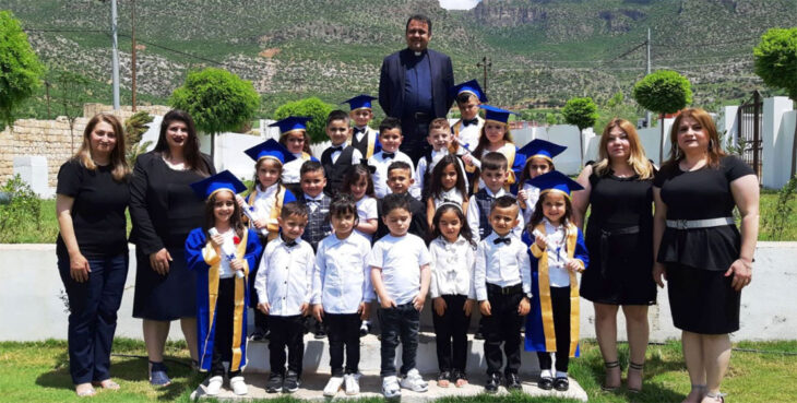 Nach dem militärischen Sieg über den IS Ende 2016 ging die Gemeinde daran, die verbliebenen Menschen weiter zu integrieren. Dazu zählt auch die frühkindliche Förderung, wie Pfarrer Samir betont: „Unser Ziel ist es, eine gebildete und offene Generation zu erziehen und das Zusammenleben zwischen christlichen, muslimischen und jesidischen Kindern zu stärken.“ Der Kindergarten stehe darum für alle Religionen offen.