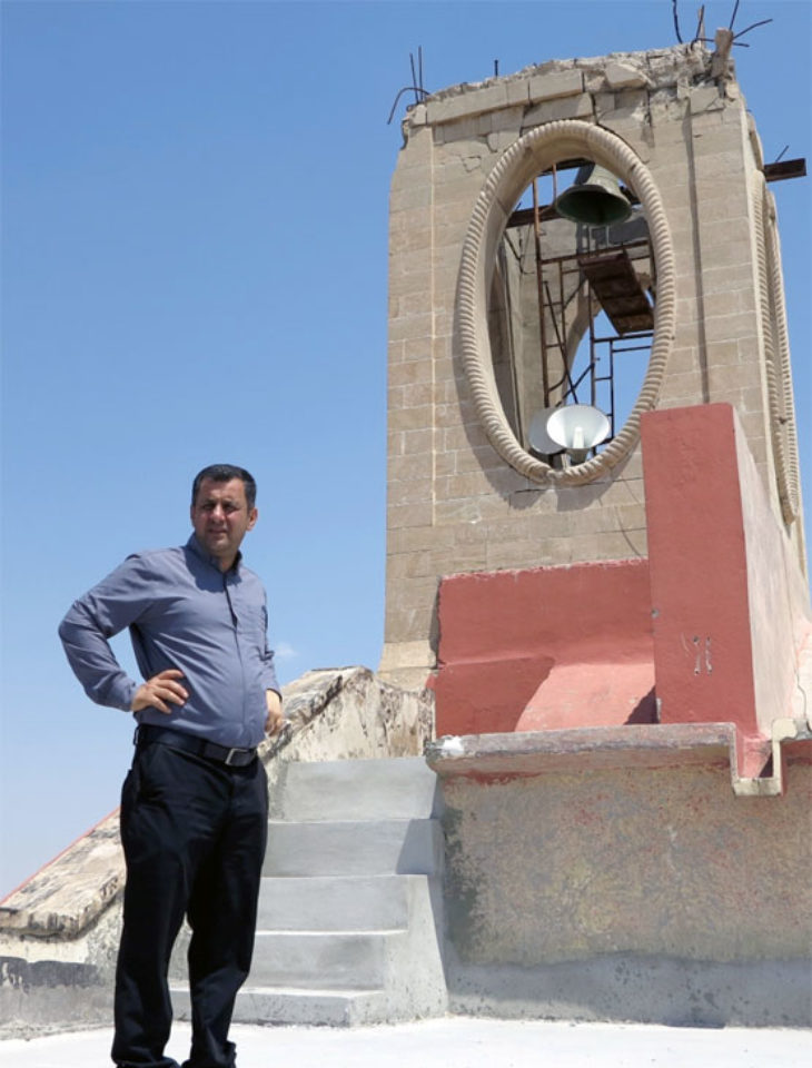 Er beaufsichtigt den Wiederaufbau der zerstörten Al-Tahira-Kirche in Karakosch. Der Ort in der Ninive-Ebene wird von den Christen auf Aramäisch auch Baghdeda genannt.