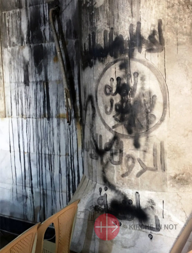 Damals eroberten die Kämpfer des sogenannten „Islamischen Staates“ die Region um Mossul und machten Karakosch und weitere Ortschaften nahezu dem Erdboden gleich. „Beim Angriff des IS wurde die Kirche in Brand gesteckt und geplündert. Die Terroristen sprengten auch den Kirchturm“, erzählt Yako.