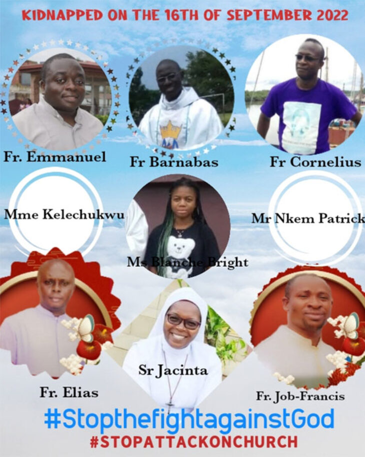 Plakat mit den Personen, die am 16. September 2022 in Nchang (Bistum Mamfe/Kamerun) entführt wurden.