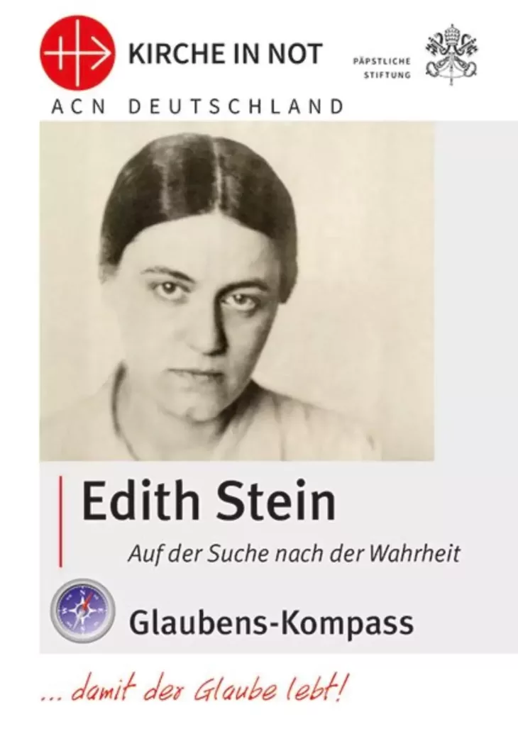 In der kostenlosen Reihe „Glaubens-Kompass“ ist ein Faltblatt über Edith Stein erschienen, das im Büro von KIRCHE IN NOT in München auch in größerer Anzahl bestellt werden kann. Darin werden die wichtigsten biografischen Stationen der Ordensfrau, aber auch ihre persönliche Suche nach der Wahrheit beschrieben, die sie zeitlebens begleitete.