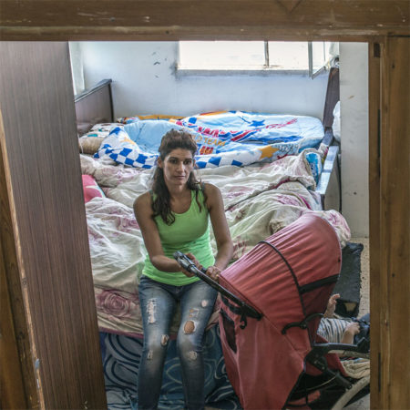 Sein Kollege Rami schneidet in der Werkstatt mit einer Maschine die Muster zu. In den Räumen stapeln sich Stoffrollen und Füllmaterial für die Winterjacken. „Dieser Auftrag kam in einer sehr kritischen Zeit, in der viele von uns verzweifelt nach Arbeit gesucht haben. Unsere Wirtschaftslage ist sehr schlecht“, erklärt Rami.