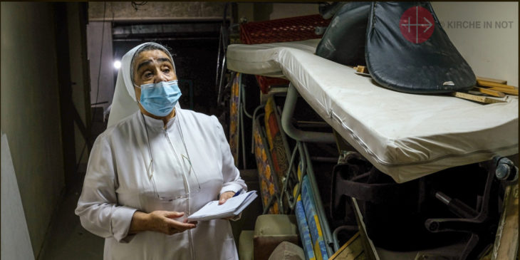 „O mein Gott“, ruft Schwester Nicolas Akiki aus, die Direktorin des „Holy Rosary Hospital“ in Beirut. Es ist das erste Mal, dass sie zusammen mit einem Team des weltweiten katholischen Hilfswerks „KIRCHE IN NOT einige Stockwerke des Krankenhauses betritt, das ihr Orden im Stadtteil Gemmayzeh (Gemmyzé) im Nordwesten der Stadt betreibt. Es liegt nur wenige hundert Meter vom Hafen entfernt, wo am 4. August die Hölle über die libanesische Hauptstadt hereinbrach: 2700 Tonnen Ammoniumnitrat gingen in die Luft – eine der größten nichtnuklearen Explosionen der Geschichte.