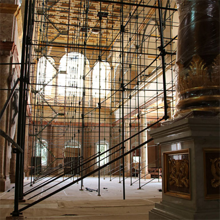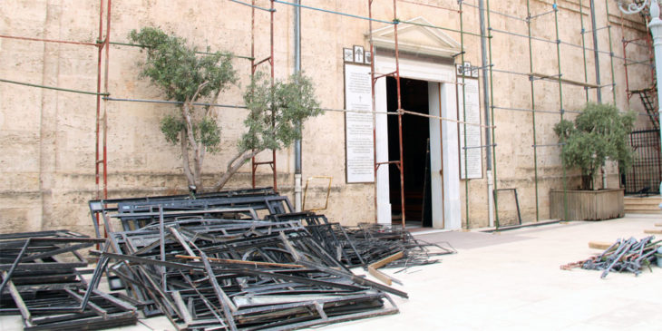 Die Sanierung der maronitischen Kathedrale hat vor einem Monat begonnen. Wir haben einige provisorische Reparaturen durchgeführt, um weitere Schäden zu verhindern, zum Beispiel durch eindringendes Regenwasser. Wir hoffen, in ein paar Wochen das Dach repariert zu haben. Die Reparaturen der beschädigten Fenster und Türen sind ebenso in vollem Gange.