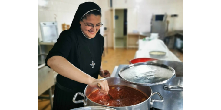 Viele Menschen suchten das Gespräch mit den Ordensfrauen: „Die Menschen vertrauen uns ihre Ängste und ihre Angst vor dem nächsten Tag an. Wir sind immer ansprechbar, wenn es irgendwo ein Problem gibt.“ Die Flüchtlinge packten in der Unterkunft auch selbst mit an, betonen die Ordensfrauen: Die Männer hacken Holz und helfen beim Verteilen der Hilfsgüter, die Frauen helfen in der Küche. Die Solidarität sei hoch.