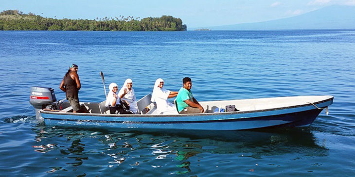 Die Betreuung der 11 000 Katholiken, die weit voneinander entfernt auf vielen Inseln leben, ist eine große Herausforderung. Um zu den Gläubigen zu gelangen, sind stundenlange Bootsfahren zwischen den verschiedenen Inseln und zusätzlich oft noch beschwerliche Fußmärsche durch den Busch notwendig.