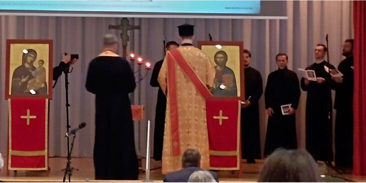 Neben diesen Informationen aus erster Hand bildete das Gebet für den Frieden in der Ukraine und in ganz Europa die zweite Säule des Begegnungsnachmittags. Die Besucherinnen und Besucher beteten gemeinsam den Barmherzigkeitsrosenkranz und Studenten des „Collegium Orientale” aus Eichstätt gestalteten im Kolpingsaal ein berührendes Friedensgebet im byzantinischen Ritus.