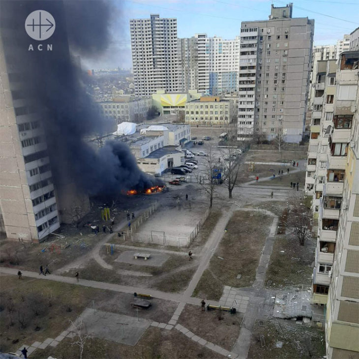 ERZBISCHOF VISVALDAS KULBOKAS: Es gibt Tag und Nacht Bombenangriffe auf verschiedene Stadtviertel. Die Nuntiatur liegt etwas außerhalb; wir wurden noch nicht bombardiert, aber es gab Straßenkämpfe ganz in der Nähe. Im Gegensatz zu Städten wie Charkiw oder Mariupol herrscht hier noch eine gewisse Ruhe. Niemand weiß, was die kommenden Tage bringen werden. Doch die humanitäre Situation ist hier wie auch in anderen Regionen der Ukraine sehr schlimm.