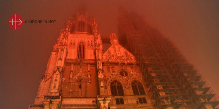 Am 12. November war der Regensburger Dom innen und außen in rotes Licht getaucht. Als „ungewohnt und tief aufwühlend“ bezeichnete Bischof Dr. Rudolf Voderholzer die Aktion in seiner Predigt während des „Abends der Zeugen“. Der Sinn des „Red Wednesday“ liege im „In-Erinnerung-Rufen der zum Himmel schreienden Tatsache, dass weltweit gegenwärtig mehr Menschen als je zuvor gewaltsam an der Ausübung ihres Glaubens gehindert werden“.