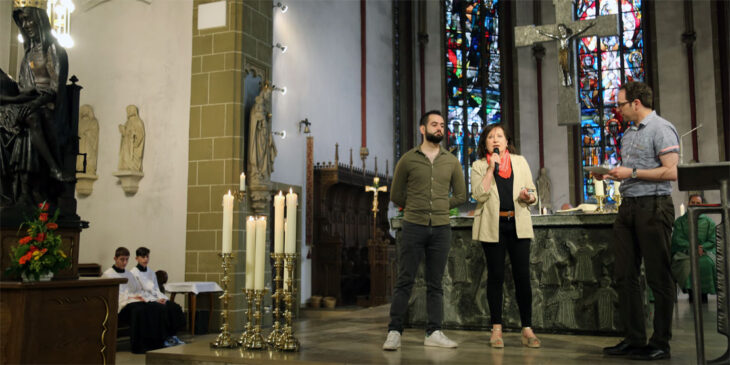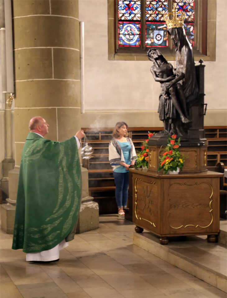 Der Tag begann mit einem Gottesdienst in der Propsteikirche in Telgte, der musikalisch von Mitgliedern der arabisch sprechenden Gemeinde aus Hannover mitgestaltet wurde. Im Gottesdienst unter der Leitung von Wallfahrtsrektor Propst Michael Langenfeld berichteten eine Mutter mit ihrem Sohn, die vor zwölf Jahren einen Anschlag auf eine katholische Kirche in Bagdad überlebt hatten.