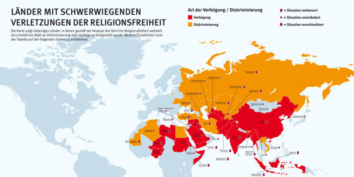 Während in Afrika und im Nahen Osten der Dschihadismus die Hauptursache der Verfolgung sei, machten im asiatischen Raum nationalistische Bewegungen und autoritäre Regierungen religiösen Minderheiten das Leben schwer.