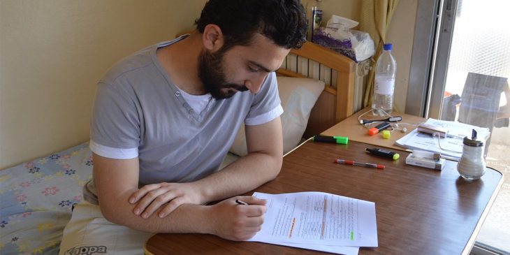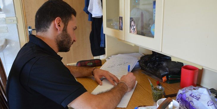 In einem der Studentenzimmer treffen wir Albert. Seinen richtigen Namen möchte er nicht preisgeben – die Gründe erzählt er später. Albert stammt ebenfalls aus dem syrisch-türkischen Grenzgebiet und steht kurz vor dem Abschluss seines Ingenieursstudiums. Die ganze Kriegszeit hat er hier ausgeharrt. „Einige meiner Freunde haben es nicht mehr ausgehalten und sind weggegangen“, erzählt Albert. „Ich aber entschied mich, mein Leben aufs Spiel zu setzen und mein Studium zur Ende zu bringen.“