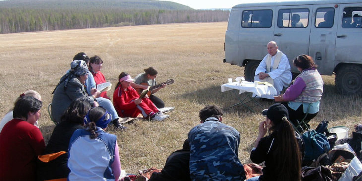 In Jakutsk und der 500 km entfernt gelegenen Stadt Aldan sind Salesianerpatres tätig. Rings um Aldan besuchen die Patres jede Woche mehrere Dörfer, in denen Katholiken vom Volk der Jakuten leben. In andere Orte, die viele hundert Kilometer weit entfernt gelegen sind, kommen sie nur einmal im Jahr.