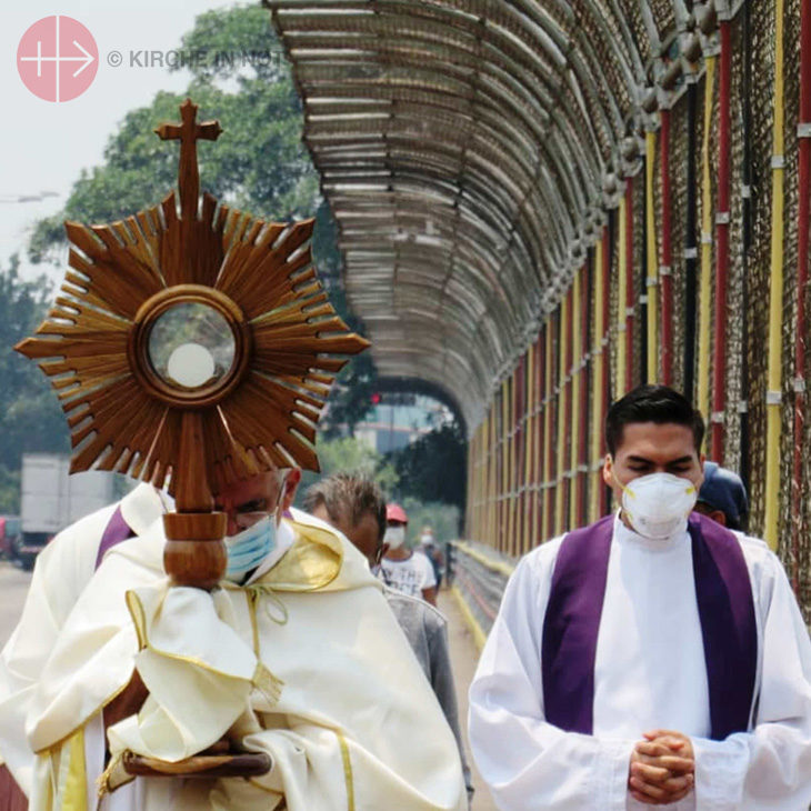 Die Kirche versucht den Menschen auch in dieser Zeit nahe zu sein. Eine besondere Aktion gab es am Sonntag, 22. März in der Diözese San Cristobal, die nahe der kolumbianischen Grenze liegt: Bischof Mario Moronta hatte die über 150 Priester seiner Diözese aufgerufen, mittags die Glocken zu läuten und – unter Berücksichtigung der Quarantäne-Vorschriften – die Eucharistie vor die Türen ihrer Kirchen zu tragen, „um von dort aus die Stadt, das Land, das Nachbarland Kolumbien und die ganze Welt mit dem Allerheiligsten zu segnen und Gott zu bitten, dass er uns von dieser Pandemie befreit.“