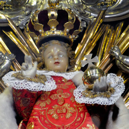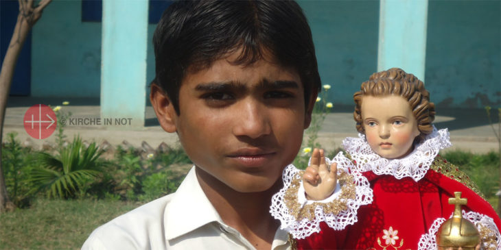 Aber wir wollen nicht mutlos werden! Vertrauen wir auf den Kleinen König! Seine Gegenwart möge uns Hoffnung und Frieden schenken! Ich befinde mich auch in der Kapelle der heiligen Märtyrerin Ursula, die ihr hinter mir seht, da ich weiß, wie viele Christen weltweit verfolgt werden, weil sie Zeugnis für Christus ablegen. Und ich weiß, wie sehr ihr diese Verfolgten liebt und sie unterstützt, liebe Wohltäter von KIRCHE IN NOT.