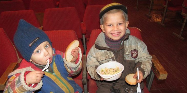 Allein die Priester haben die Möglichkeit, die Kriegszone zu verlassen. Sie bringen Hilfskonvois auf den Weg. Häufig werden diese jedoch beschossen. Die Menschen sind für jede Gabe dankbar: eine warme Mahlzeit, ein Lebensmittelpaket oder auch ein kleines Weihnachtsgeschenk.