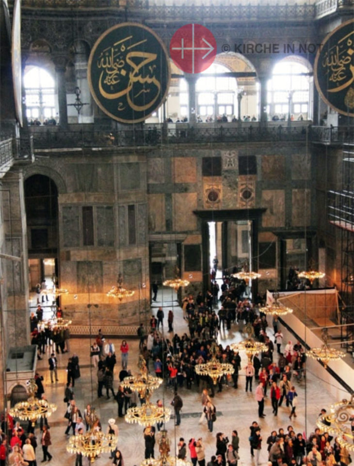 In dieser ehemaligen Kathedrale erklang Ende März erneut der Ruf des Muezzins zum Gebet. Dies war bereits das zweite Mal in der jüngeren Vergangenheit: 2016 war nach 85-jähriger Unterbrechung der islamische Gebetsruf in der Basilika zu hören.