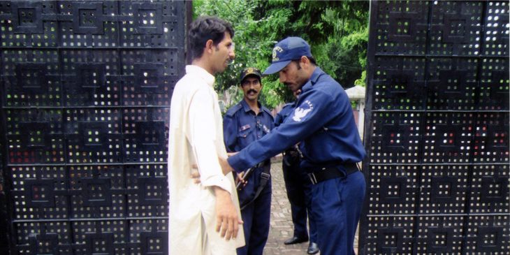 Auch vor der Kirche, die Dolly mit ihrer Familie regelmäßig besucht, stehen immer zwei Aufseher. KIRCHE IN NOT fördert aufgrund der Gefahrenlage in Pakistan ebenfalls Maßnahmen, die der Sicherheit von Gläubigen und kirchlichen Gebäuden dienen.