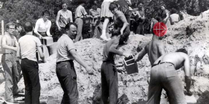 Die Kirche wurde buchstäblich mit bloßen Händen und Schubkarren erbaut; die Arbeiter – Männer wie Frauen – leisteten Übermenschliches. Da die Behörden den staatlichen Unternehmen verboten hatten, Kräne zu verleihen und Baumaterial an Pfarrer Gorzelany und seine Helfer zu verkaufen, musste alles selbst beschafft werden, zumeist aus dem Ausland. Die bis zu 20 Meter hohen Mauern mussten mit den Händen errichtet werden. Der Beton wurde von Hand zu Hand nach oben geschaufelt, Spaten für Spaten. Nach ihrer Arbeit in den Fabriken kamen tausende Menschen und arbeiteten an ihrer Kirche, selbstverständlich ohne Bezahlung. Die Arbeiten an der Kirche gingen Tag und Nacht weiter, jahrelang.