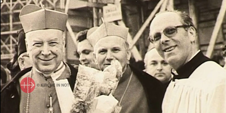 Nowa Huta ist ein Symbol dieser Entwicklung. Der polnische Historiker Antoni Dudek analysiert: Es scheint, dass für Karol Wojtyła Nowa Huta der wichtigste Übungsplatz war, der Kirche in Polen und in allen von Kommunisten beherrschten Ländern Mittel- und Osteuropas wieder einen Platz zu verschaffen.“ Der Aufgabe, den Christen in Polen und anderen Ländern hinter dem Eisernen Vorhang Luft zum Atmen zu verschaffen, hatte sich KIRCHE IN NOT bereits seit Anfang der Fünfziger Jahre verschrieben. Die Hilfe von KIRCHE IN NOT war auch deshalb so effizient, weil Pater Werenfried van Straaten und Karol Wojtyła ein langjähriger, herzlicher Kontakt verband. Das kam noch aus der Zeit, als Wojtyła Kardinal in Krakau war und für die polnische Bischofskonferenz die Unterstützung von KIRCHE IN NOT für die polnischen Katholiken organisierte.