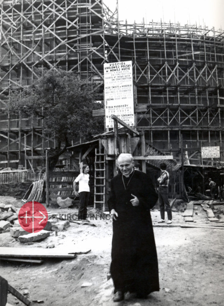 Als die kommunistischen Machthaber eine riesige Arbeiter-Trabantenstadt planten, Nowa Huta bei Krakau, eine ,,Stadt ohne Gott“, in der kein Platz für eine Kirche sein sollte, half „Kirche in Not“ auch hier. Kardinal Wojtyla gelang es, dem Regime 1967 eine Baugenehmigung für ein Gotteshaus abzuringen. Zwischen 1967 und 1977 wurde in Nowa Huta eine Kirche mit Hilfe von „Kirche in Not“ errichtet, die schließlich am 15. Mai 1977 der ,,Königin von Polen“ geweiht wurde. Diese Kirche gilt in Polen bis heute als Symbol des siegreichen Katholizismus gilt.