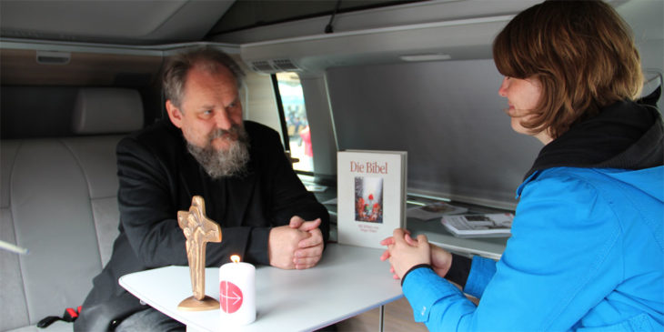 Sinn und Zweck unseres „fahrenden Beichtstuhls” ist es, die Menschen in Deutschland neu für die Beichte zu begeistern.