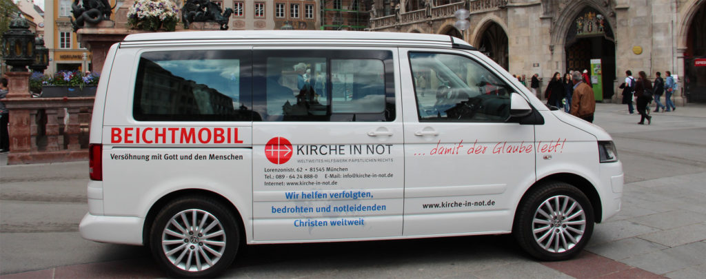 Mit dem Beichtmobil knüpft unser Hilfswerk an die Tradition der „Kapellenwagen” an. Mit diesen zu fahrenden Kirchen umgebauten Lkws hatte der Gründer von KIRCHE IN NOT, Pater Werenfried van Straaten, nach dem Krieg mitgeholfen, die Seelsorge für heimatvertriebene Katholiken sicherzustellen.