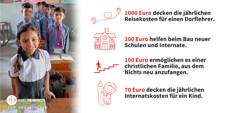 KIRCHE IN NOT unterstützt Christen in Pakistan durch die Baufinanzierung katholischer Schulen und Internate, deren Unterhalt sowie Fluthilfen für christliche Bauernfamilien.
