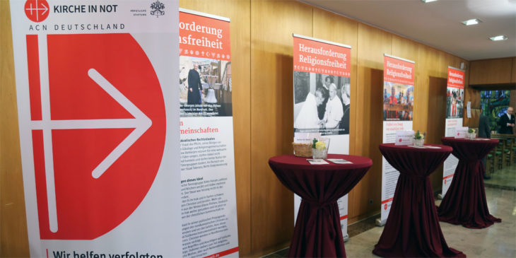 - Termin und Dauer der Ausstellung „Herausforderung Religionsfreiheit“ sind mit dem Büro von KIRCHE IN NOT in München zu vereinbaren (Ansprechpartner: Stefan Stein, Telefonnummer: 089 – 64 24 888 35; E-Mail: stein@kirche-in-not.de).