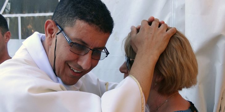 Der Priester Paul-Elie Cheknoun segnet eine Frau.