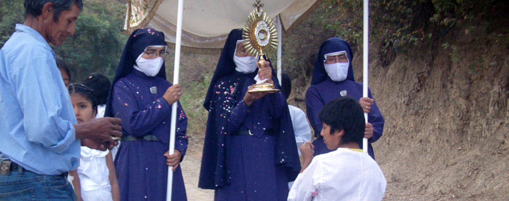 In der bolivianischen Erzdiözese Sucre leben und arbeiten in drei Pfarreien in den Anden sechs Schwestern, die an ihren blauen Ordensgewändern leicht zu erkennen sind. Eine von ihnen stammt aus Argentinien, die anderen fünf aus Peru.