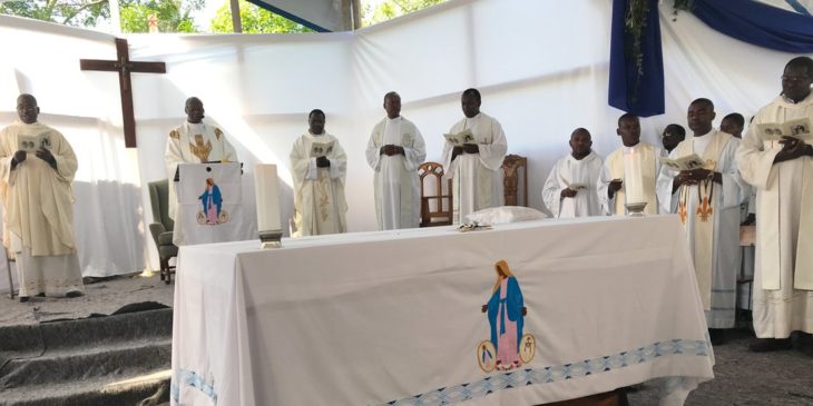 Bislang gibt es aber noch keine Pfarrkirche, sondern die heilige Messe wird an provisorischen Orten gefeiert. Aber dies ist natürlich kein angemessener Zustand, und der Platz reicht auch nicht aus.