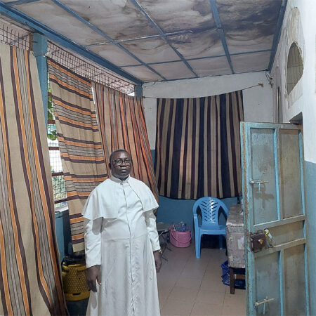 Einer von ihnen ist Pfarrer Emmanuel Francis Allie aus der Pfarrei „Unserer Lieben Frau von der Immerwährenden Hilfe“ in Lakka, einem Stadtteil der Hauptstadt Freetown. Er beklagt sich nicht, obwohl er allen Grund dazu hätte: Er lebt, arbeitet und betet in einem völlig maroden Haus, das zudem auch noch ständig überschwemmt wird. Das Dach ist leck, auf dem Grundstück bildet sich bei Regen ein See.