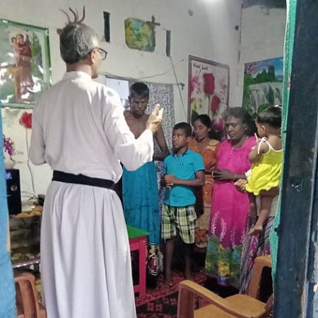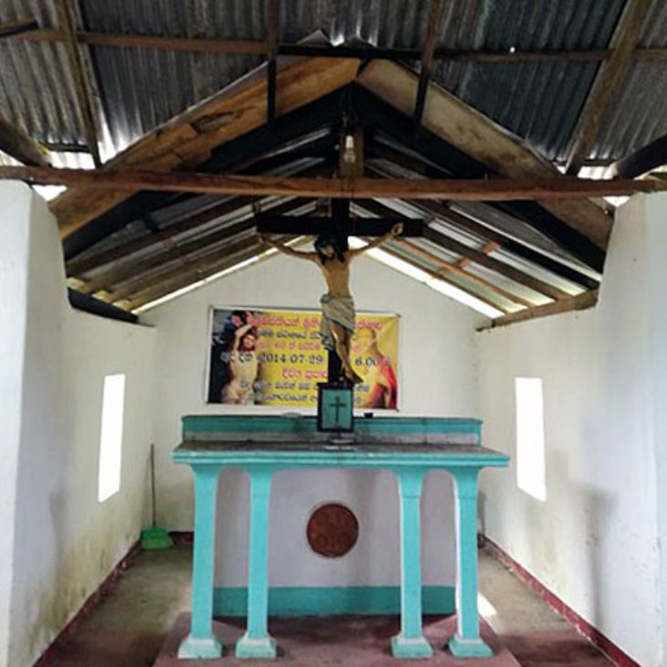 Die Kirche kümmert sich hier um das Wohl von Christen und Andersgläubigen gleichermaßen und steht den Menschen in ihren Nöten zur Seite. Für die katholischen Familien ist der Glaube sehr wichtig. „Sie geben Zeugnis von der Liebe Christi und leben in Eintracht miteinander“, bezeugt Pfarrer Sanjeewa Peiris, der uns als Beauftragter der Diözese Ratnapura um Hilfe bittet. Denn die Gemeinde hat im Moment keinen Ort, wo sie sich versammeln kann.