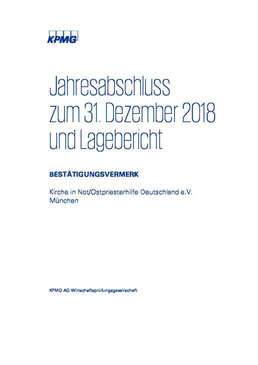 Testat der Wirtschaftsprüfer 2018 mit Bilanz, Ergebnisrechnung und Lagebericht