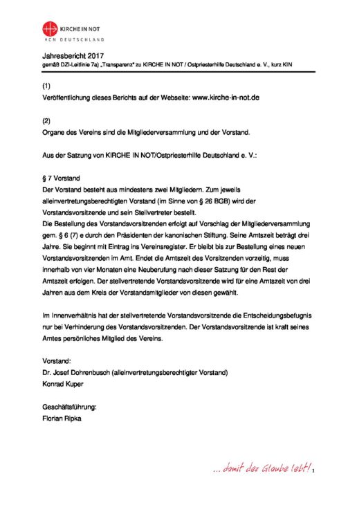 Jahresbericht 2017 gemäß DZI-Leitlinie