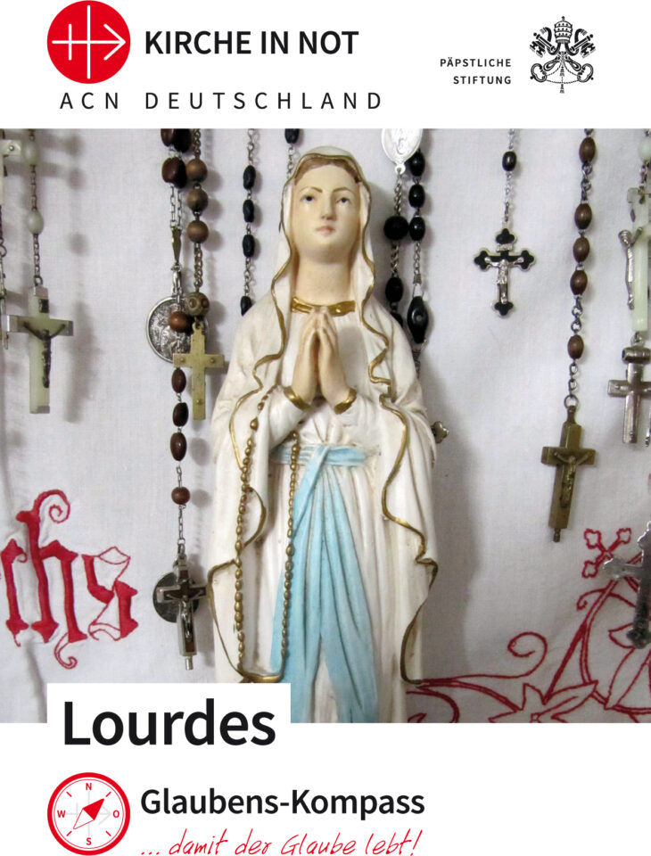 In unserem kostenlosen „Glaubens-Kompass” finden Sie die Geschichte von Bernadette Soubirous, der die Mutter Gottes erschienen ist, ihrer Heiligsprechung sowie alle wichtigen Informationen zur Erscheinungsgrotte in Lourdes.