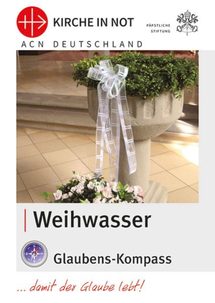 Das zehnseitige Faltblatt „Glaubens-Kompass Weihwasser” erläutert das Wesen und die Verwendung dieser segensreichen Sakramentale in Kirche und Haus.