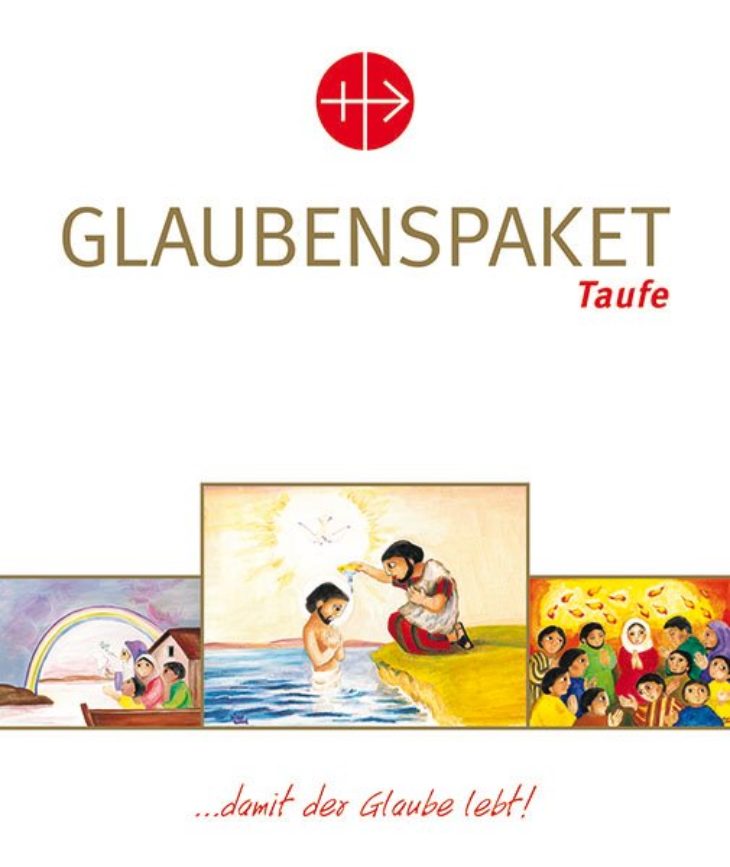 Das Glaubenspaket Taufe soll ein Wegbegleiter für die ersten Schritte im katholischen Glauben sein. Es enthält ein Metallkreuz, das Kinderbibel-Bilderbuch, einen Katechismus (für die Eltern), Kindergebete, Motiv-Karten (Schutzengel, Maria, Der Gute Hirte).