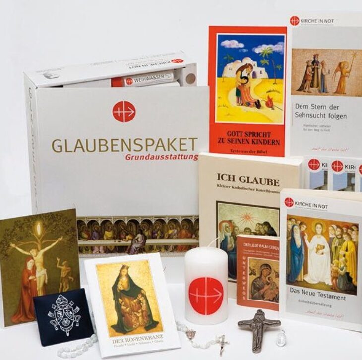 Mit dem Kauf eines Glaubenspakets schenken Sie einem bedürftigen Kind irgendwo auf der Welt eine Kinderbibel. Zwei Euro von jedem Glaubenspaket werden in eine neue Kinderbibel von KIRCHE IN NOT investiert. Dieses Buch ist oft das erste oder einzige gedruckte Werk, das eine Familie besitzt. Sämtliche Überschüsse kommen den weltweiten Projekten von KIRCHE IN NOT zu.