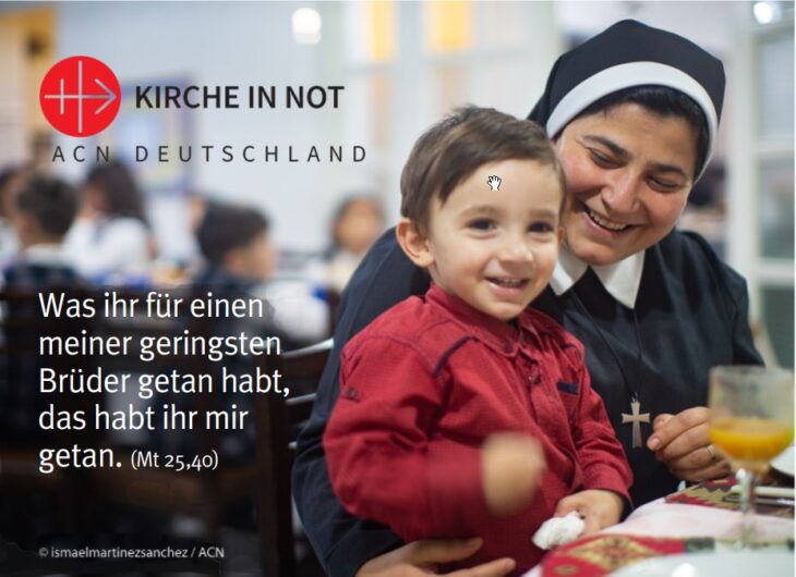 Kühlschrank-Magnet mit Motiven aus der Weltkirche und Bibelspruch.