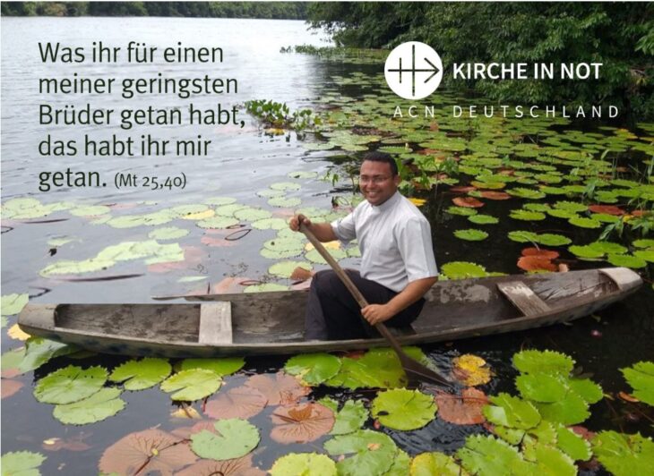 Kühlschrank-Magnet mit Motiven aus der Weltkirche und Bibelspruch.