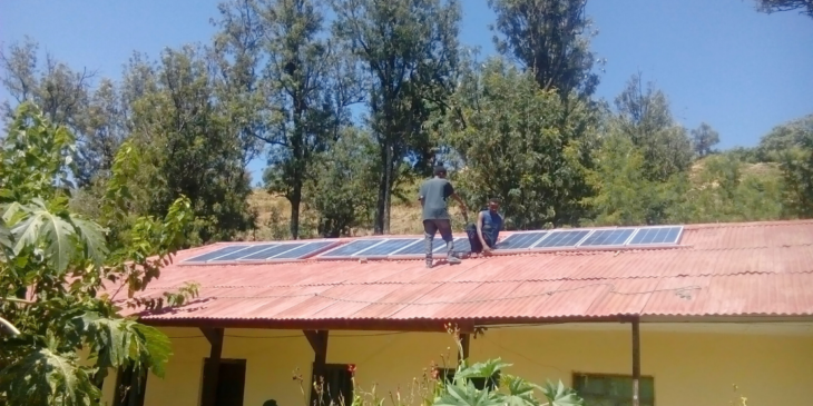 Manche Dörfer in den ländlichen Regionen sind nach wie vor nicht ans Stromnetz angeschlossen. KIRCHE IN NOT stattet Pfarreien mit Solarkits aus, das sind einfache und leicht zu installierende Anlagen. Sie werden auf den Dächern der Pfarrhäuser angebracht. So können Gottesdienste und Pfarreiaktivitäten jetzt auch abends stattfinden. In den Gemeindehäusern treffen sich Jugendliche zum Unterricht oder machen gemeinsam Hausaufgaben. Nun gibt es dort Strom für einen Computer oder um das Handy aufzuladen.