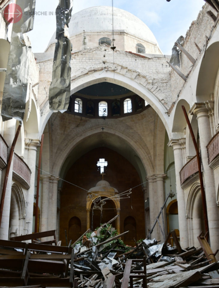 Zu Weihnachten 2016 gingen Bilder um die Welt, als die Gemeinde nach dem Ende der Kampfhandlungen Gottesdienst in der zerstörten Kathedrale feierte und eine Krippe in den Trümmern errichtete. Danach begann der Wiederaufbau; das weltweite päpstliche Hilfswerk KIRCHE IN NOT hat ihn hauptsächlich unterstützt.